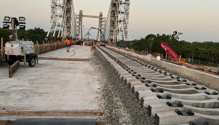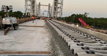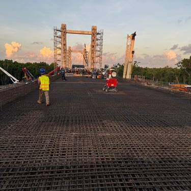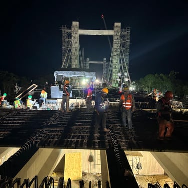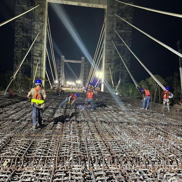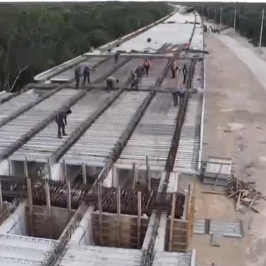 Obras públicas, puentes, caminos y proyectos de infraestructura.